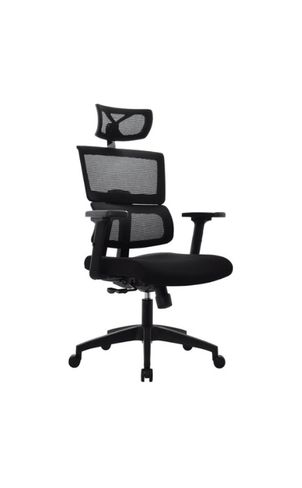 - Espaldar con marco perimetral en PP tapizado en malla negra con soporte lumbar fijo autorregulable