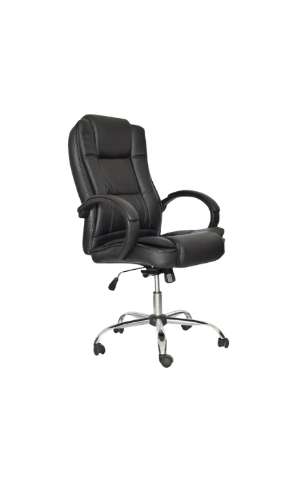 - Asiento y espaldar tapizado en cuerina negra